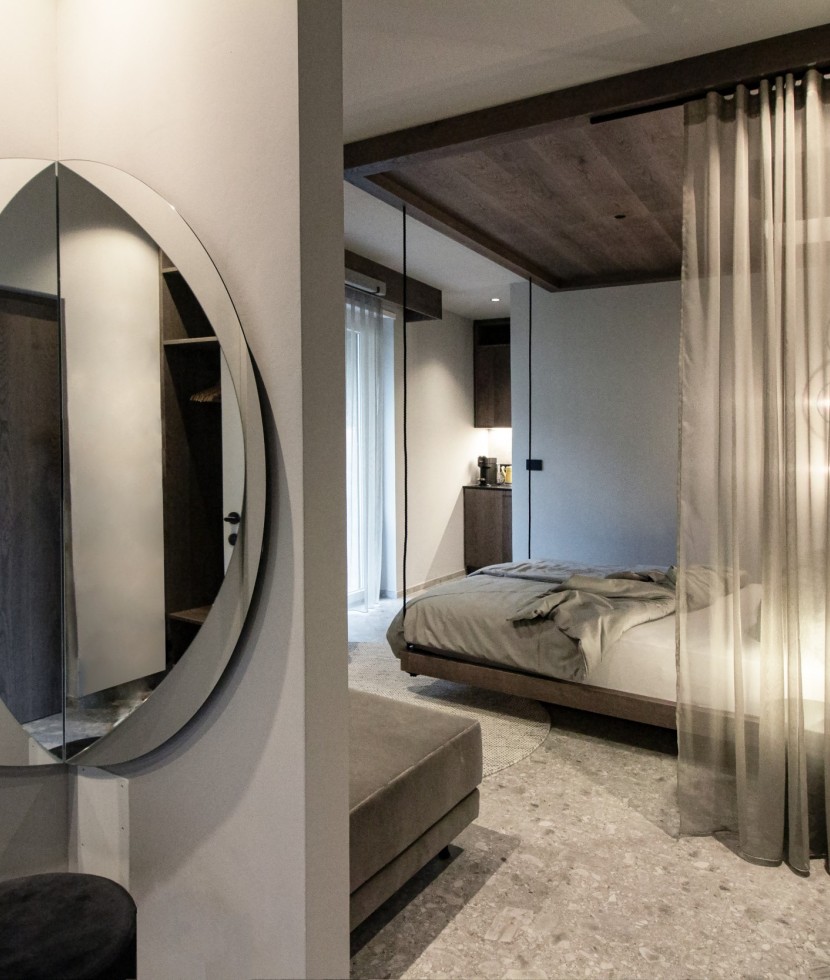 Holidays in a cinema atmosphere? This project is about a small holiday flat in the heart of Merano. The guest is not just a spectator but becomes the most important protagonist of his own story: Take a seat!